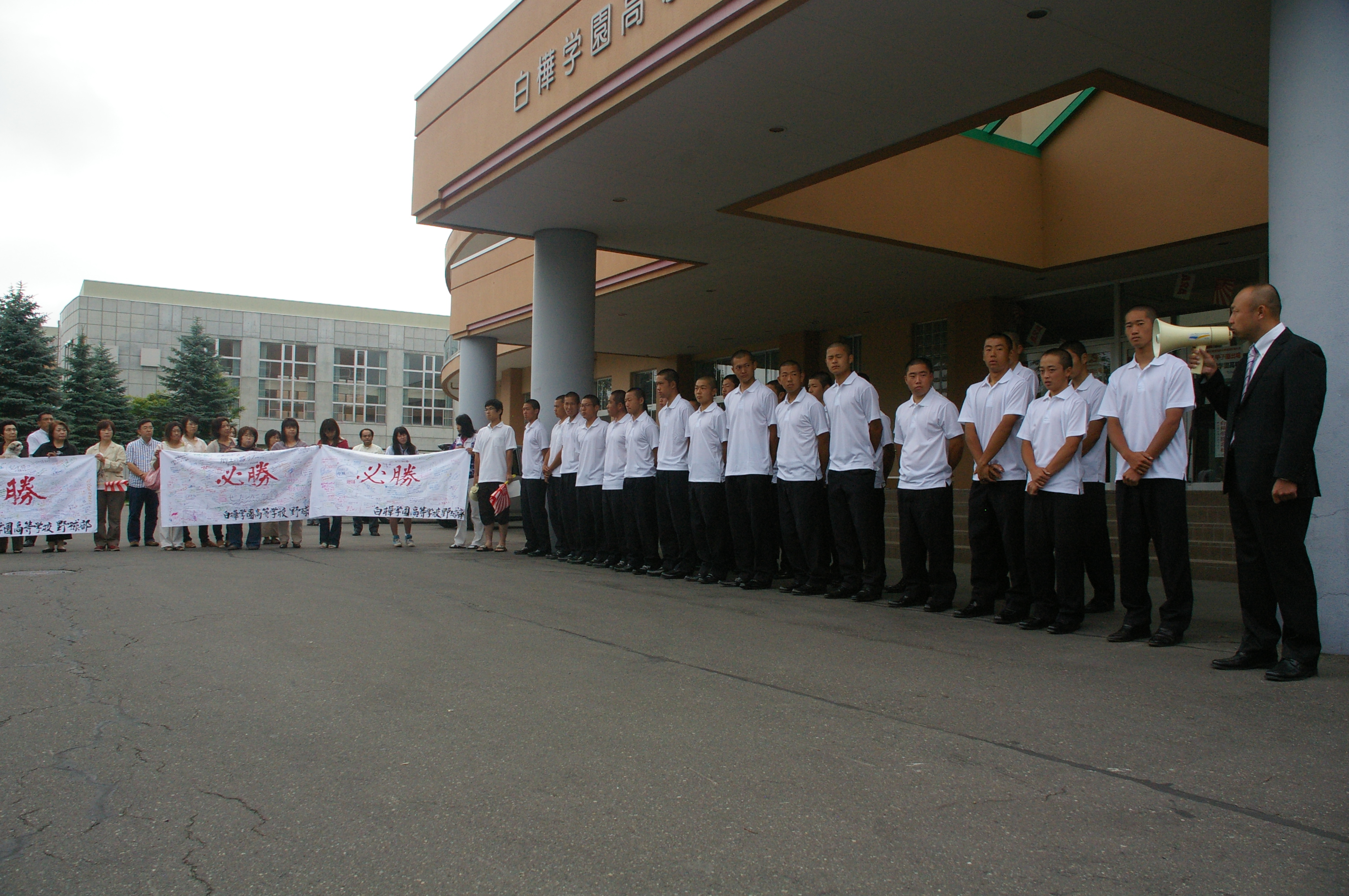 2011年8月2日 新着情報高校野球関連生徒・保護者の皆様へ白樺学園 同窓会 出発式 8月1日(月)午前7時30分に、一般市民に、保護者、同窓会、教職員の見守る中、出発式を行い、白樺学園野球部の生徒は甲子園に向けて無事出発しました。