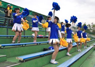 応援にかけつけたチアリーディング部員たちも喜ぶ