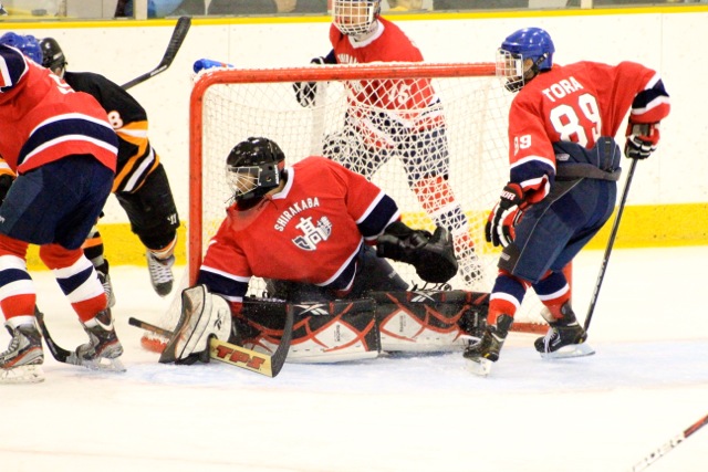 試合は、第一ピリオド、桂川選手のゴール(人里主将のアシスト)で先制。第二ピリオドに、同じく桂川選手のゴール(アシスト:人里選手)で白樺は追加点をあげた。さらに山口副主将のゴール(アシスト:鈴木選手)で、3点。ディフェンス陣、キーパーの我孫子選手は相手に失点を与えず、3−0で勝利した。