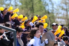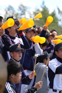 今日は、風速10m前後の強風の為、時折強い砂ぼこいりが起きていましたが、スタンドには昨日に増して応援団が集まり、吹奏楽部も加勢。野球部保護者、本校関係者に加え、チアリーディング部、アイスホッケー部等が夏の応援さながらの気持ちのこもった声援が選手達に届いたかのような見事な優勝だった。
