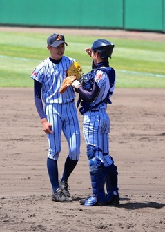 決勝の先発は背番号11中野投手。4回1/3を投げた。
