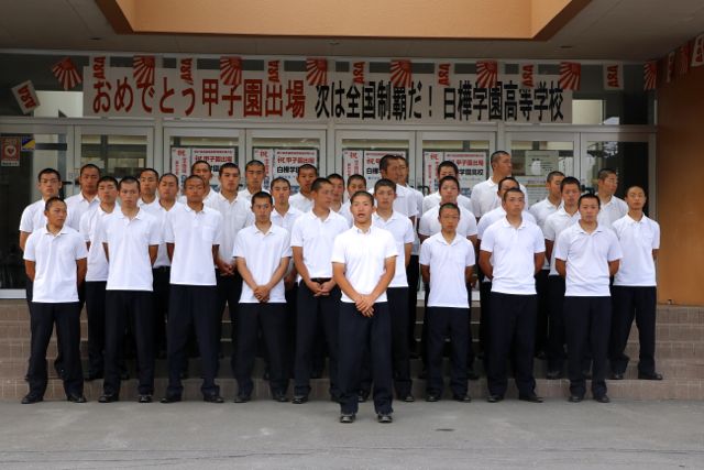 本日午前6時、野球部ナインが甲子園へ向けて出発しました。朝早くにもかかわらず、保護者や学校関係者、教職員など50名ほどが集合。校長、監督の挨拶の後、周東主将が挨拶し、力強く抱負を語った。白樺ナインはこの後、道庁を表敬訪問、朝日新聞社のセレモニーに出席した後、新千歳から東京を経由して宿舎のある大阪へ向う。明日は甲子園を下見の後、割り当てられたグラウンドで練習。投手陣は高野連が行なっている、肩、ひじの関節機能検査をうける。なお昨年度は検査対象の152人のうち、1週間程度の投球回避が求められたり、投球禁止となった選手はいなかった。大阪空港(伊丹)の本日の予想最高気温は36度で明日は34度。最低気温も25度以上の日が日常になります。実力を発揮し、活躍できるよう一人ひとり意識を高く持ち体を大切に。朝早くから見送ってくださった皆さん、お疲れさまでした。ありがとうございました。(荘司)