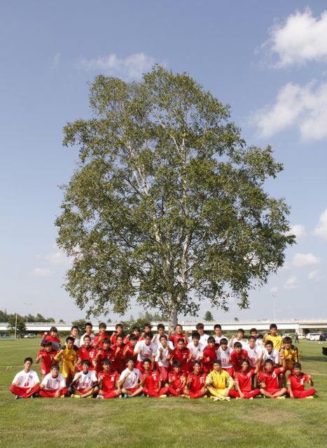試合は前半終了近くの35分、先制を許し0−1のままハーフタイム。円陣を組んだ部員達からは一際大きな声で「勝つぞ!」の声。後半に入り、47分大宮がゴール前に切り込みキーパー前で左にパスすると、これを大泉が合わせ同点に追いついた。同点後も油断することなく守りから入り、30分以上両チーム無得点のまま80分の試合時間を追えた。大会規定によりPKが行われ、4本目まで両チーム全員が成功。すると相手チームの5本目をキーパーの大野が左へ跳びながら両手でボールをはじき返しセーブ。最後はこの試合途中出場の中野がゴール左隅にはなった力強いシュートは、予想して同方向へ跳んでいたキーパーの伸びた両腕のさらに左隅へ決まり勝利した。今日も応援の声が鳴り止むことのなかった白樺学園の応援は、サッカー部員の他、野球部、アイスホッケー部等、クラスメート達がかけつけた。「さあ行きましょう!」の応援が鳴り響き、劣勢を吹き飛ばし勝利の女神を呼び寄せているようだった。「大きな一歩。全員で全道のピッチに繋げられるよう1日1日頑張って行きます。」とベンチから一際大きな声で声援をおくった3年生背番号1を背負う長身キーパーの佐藤君。プリンスリーグ道東ブロックリーグ1部では上位(現在4位)の柏葉を破り、勢いをつけた。次は同じく3位の帯広大谷高校。選手も女神も最後までほほ笑んでいて欲しい。(荘司)