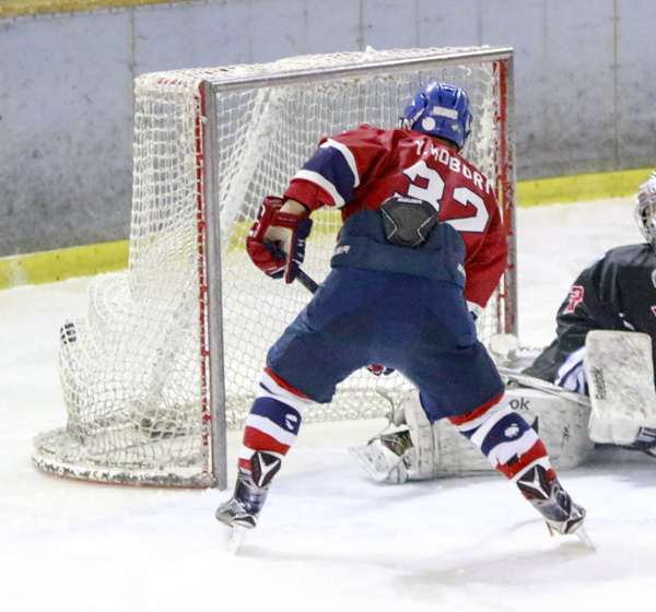 第一ピリオド7分6秒、#14キャプテンの清水がゴールを決め2−0とする。