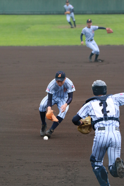その後、ショート小笠原が好守を見せ、本塁でランナーをアウトにするなど最少失点の1に防いだ。