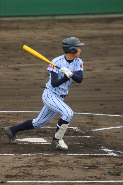 4回 適時二塁打をはなつ西村(陸)選手