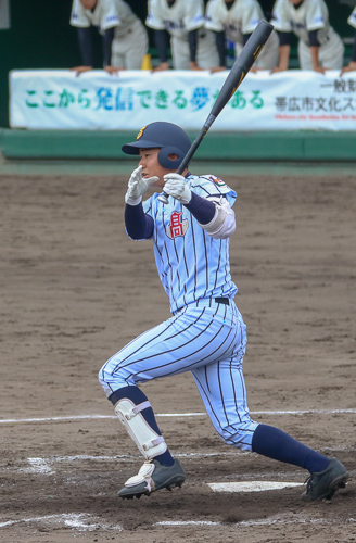 追加点は二死から生まれた。二死一塁、正捕手の西村陸は新チームになってマスクをかぶった捕手だ。主将で攻守の要の先輩捕手をスタンドで応援した昨夏。3年生となり夏の第一打席は、左中間へのタイムリー二塁打。貴重な追加点が二死から入った。その後鈴木のタイムリーで西村陸もホームを踏み3−0とした。