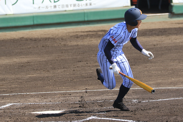 二死二塁から、技ありでライト前に運ぶ一塁手で出場の片山選手。