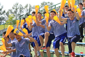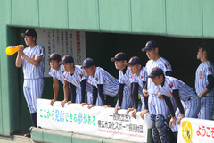 野球部の3年生が中心に、一二年生、そして校長先生も応援をリードしました。