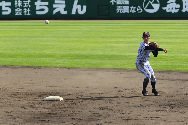 軽快な守備をみせる大和三塁手。白樺学園は無失策だった。