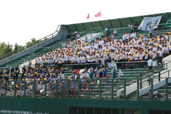先制を許すも逆転に成功。全校応援の声援。そしてベンチからの大きな声が選手を着実に鼓舞していた。控え選手と出場選手が一体となって闘い、攻撃では全てのイニングで得点圏にランナーを進めた。5イニングス毎回安打で先発全員安打の計16安打で13得点。マルチヒットの打者が5人に加え、全打席出塁の片山選手は相手にアウトを与えなかった。出場の2年生が6四死球(全体8)7安打(タイムリー5,三塁打1)で与えたアウトは2つだけで「3年生との最後の夏を一日でも長く過ごしたい。」そんな思いが伝わってくる。暑さ、プレッシャーの中先発した桑村投手は毎回スコアリングポジションにランナーを置いたにも関わらず2回以降は無四球、自責点0と初回の勢いを止めるナイスピッチングだった。全員野球で一打席一打席がつながり、出塁率は.667。3人に2人はアウトにならず、その結果が積み重なり得点が13点になった。先立って行われた野球部壮行会で「春の大会を反省し練習してきました。一体感を持って闘いたい。応援よろしくお願いします。」と大和主将が挨拶したが、一体感のある試合だったことが、ベンチの声や応援だけでなく、記録からも感じとることができたナイスゲームだった。(荘司)