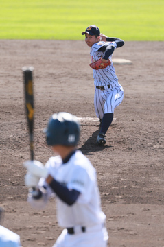 公式戦に初出場、初登板で初球を投じる坂本(武)選手