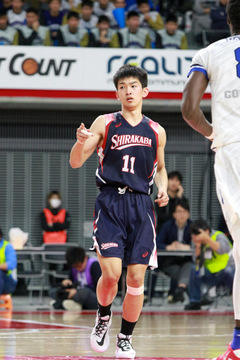 宮下ヘッドコーチ(本校男子バスケットボール顧問)「高さのある相手に前半特に第二クォーターはよくやった。夏の全国経験を生かしよくたたかった。選手、支援いただいたみなさんに感謝したい。また全国へ来たい。」