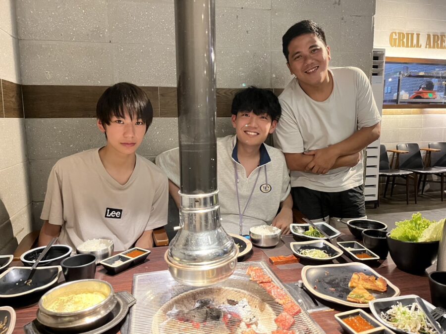 到着時、現地のコーディネーターのマークさんとスタッフのシュンさんと韓国焼肉店で晩御飯を食べたときの様子