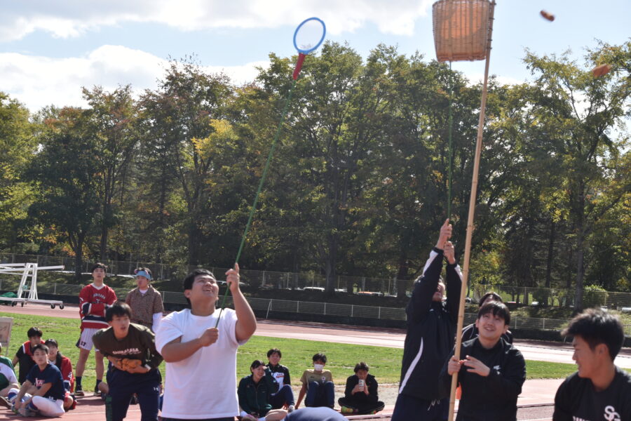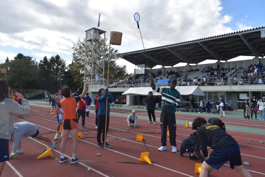 玉入れのようすです。通常の玉入れとは異なり妨害役がいます。