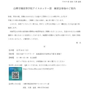 アイスホッケー部 練習会参加のご案内【中学1・2年生対象】