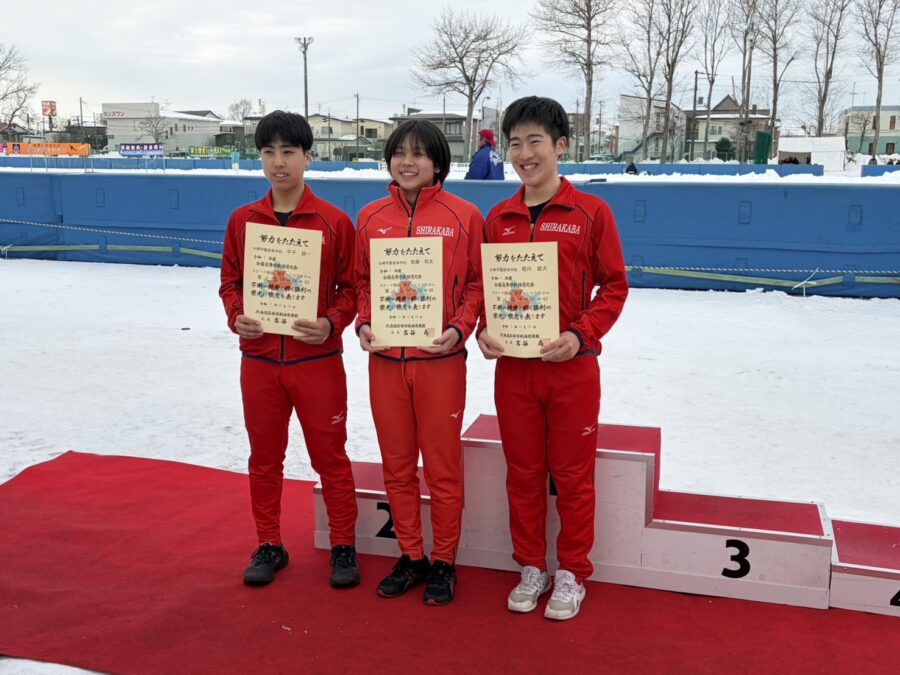 1位 坂野誠道(帯広第一中出身2年)7分16秒70 2位 佐藤将太(上西春別中出身1年)7分17秒36
