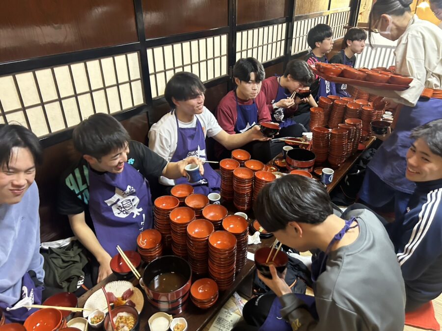 写真は遠征先でわんこそばを食べているようすです。