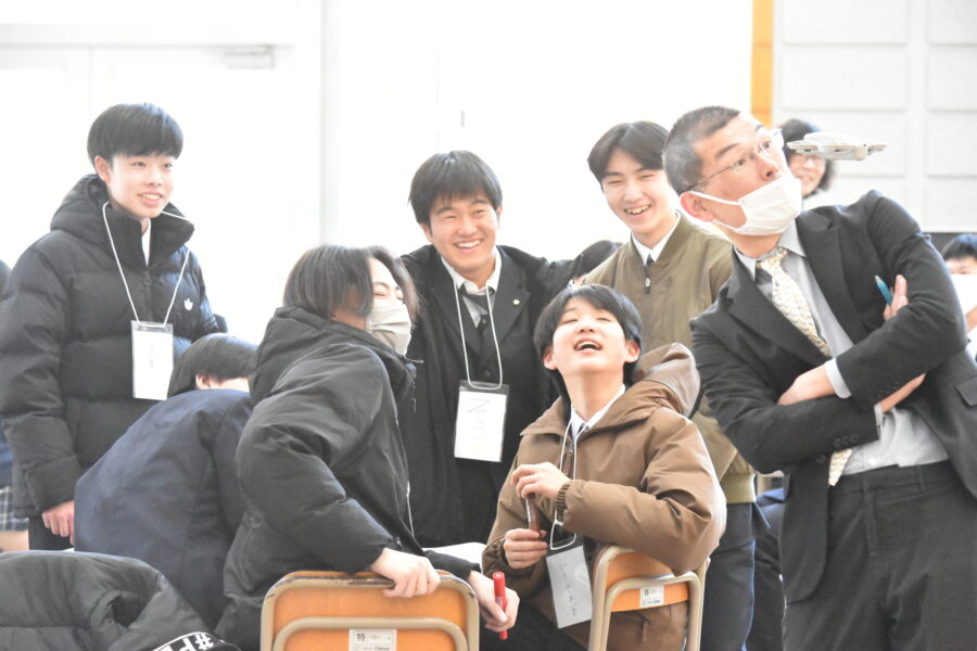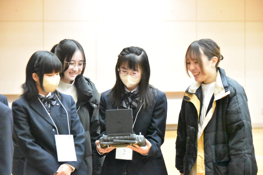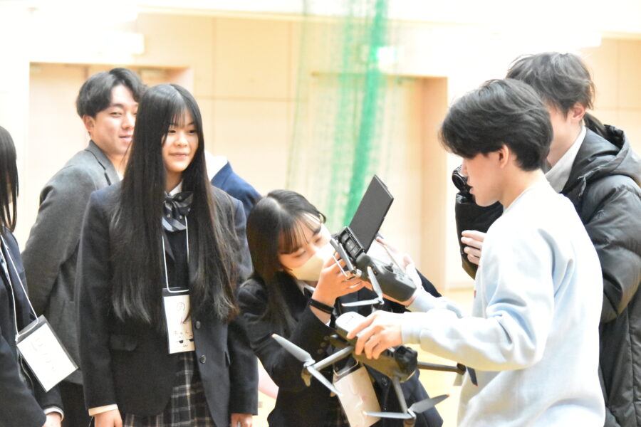 ドローンに興味津々の生徒たち
