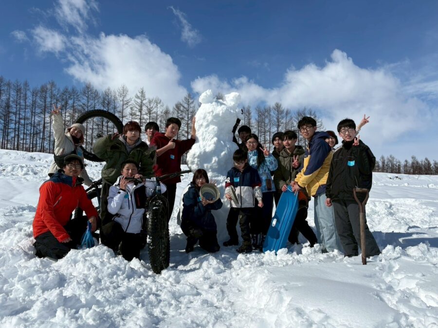 3月8日(日)芽室町新朝日にて本校生徒、芽室ジモト大学附属高校探究部(以下、探究部)所属の嶋中優騎さん(総合コース・芽室中出身)がサイクリングイベントを開催しました。想定外の降雪により、前半のロードサイクリングは雪合戦に変更されました。