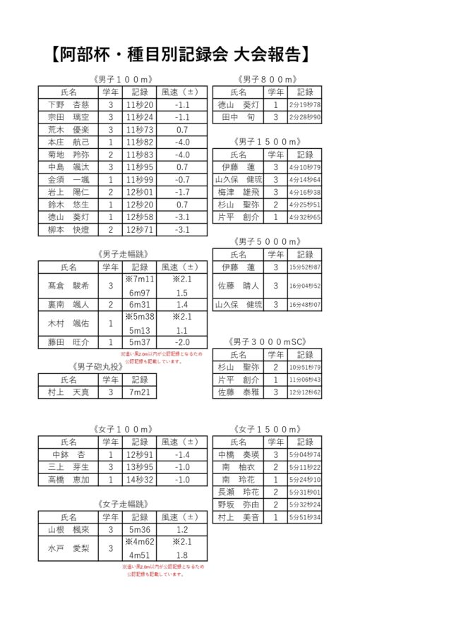 阿部杯・種目別記録会第1戦